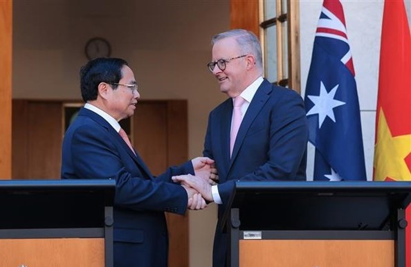Canberra: Prime Minister Pham Minh Chinh and his Australian counterpart Anthony Albanese announced the elevation of bilateral partnership to a Comprehensive Strategic Partnership between Vietnam and Australia at a press conference after their talks in Canberra.