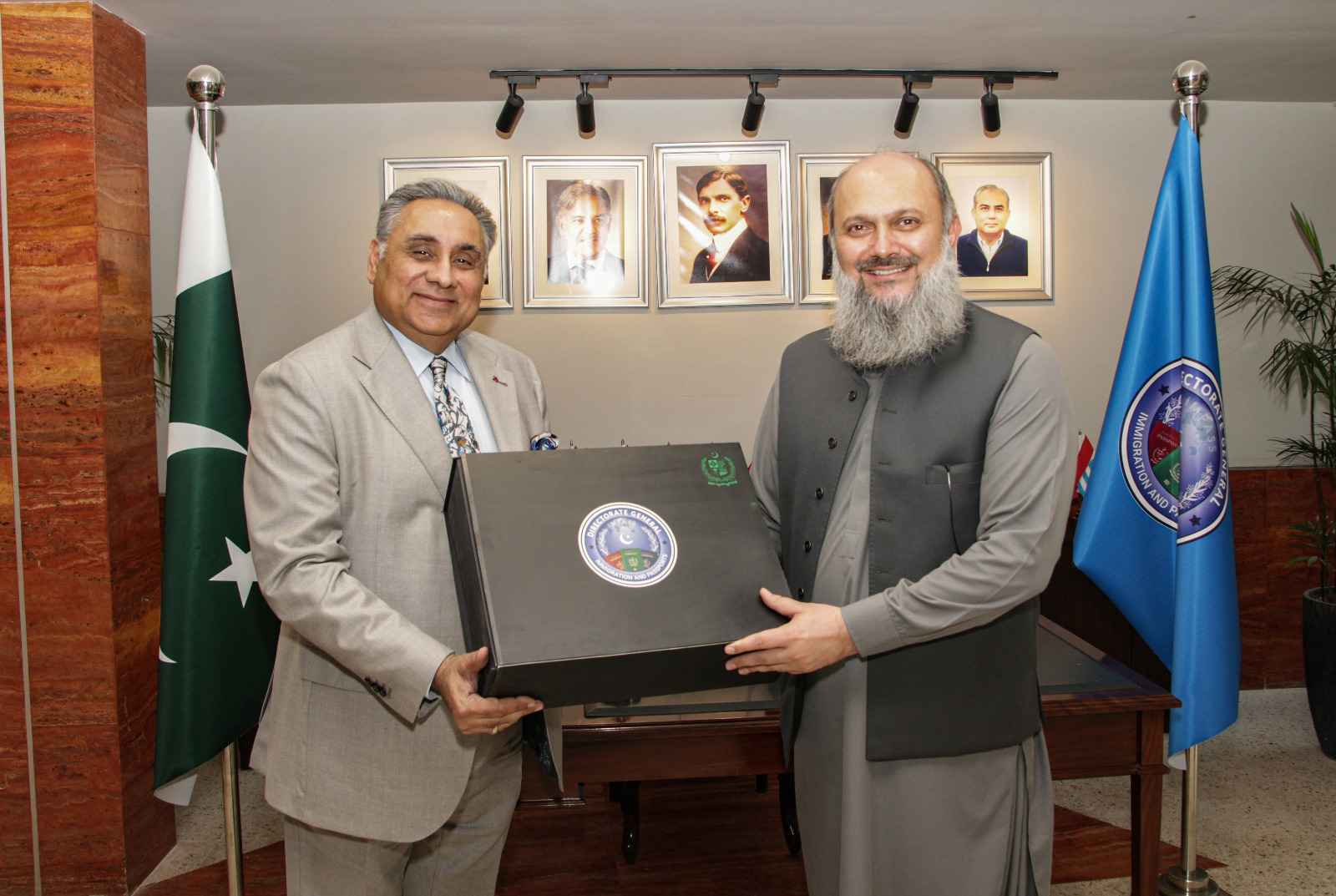 Also present were Mr. Fakhr Alam, Vice Chairman DP World and CEO of Pakistan Mart Project in the UAE, Rana Ihsaan Afzal, Coordinator to the Prime Minister, and Muhammad Ashraf, Executive Director General from the Ministry of Commerce.