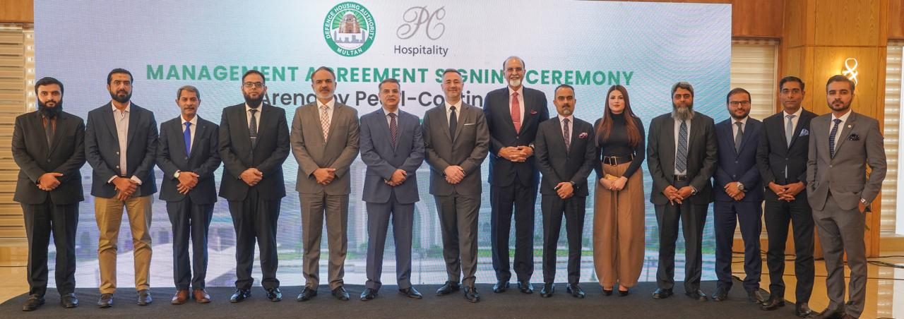 MULTAN( WNAM REPORT ): Pearl-Continental (PC), the hospitality division of Hashoo Group, has entered into a management agreement with DHA Multan to manage and operate Arena DHA Multan, the city’s premier event and hospitality complex. The signing ceremony took place at Rumanza by Pearl-Continental Hotel, Multan, attended by senior leadership of PC Hospitality, Hashoo Group, DHA Multan management, and distinguished personalities of the city.