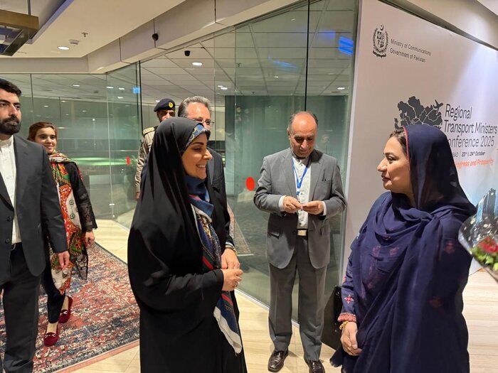 Farzaneh Sadegh and her accompanying delegation were welcomed upon arrival at Islamabad International Airport by Nabi Shirazi, the chargé d’affaires of Iran’s Embassy in Islamabad, along with senior officials from Pakistan’s Ministry of Communications.