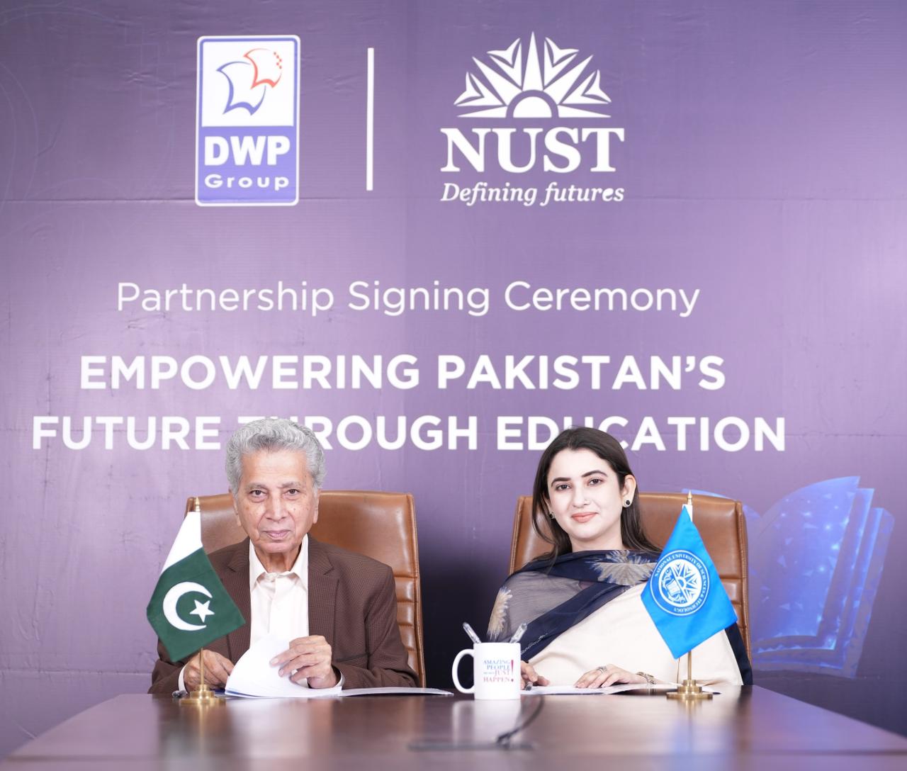The MoU was formally signed between Sabah-ud-Din, representing DWP Group, and Arooba Gillani, Director of Advancement at NUST, in a ceremony held at the university campus.