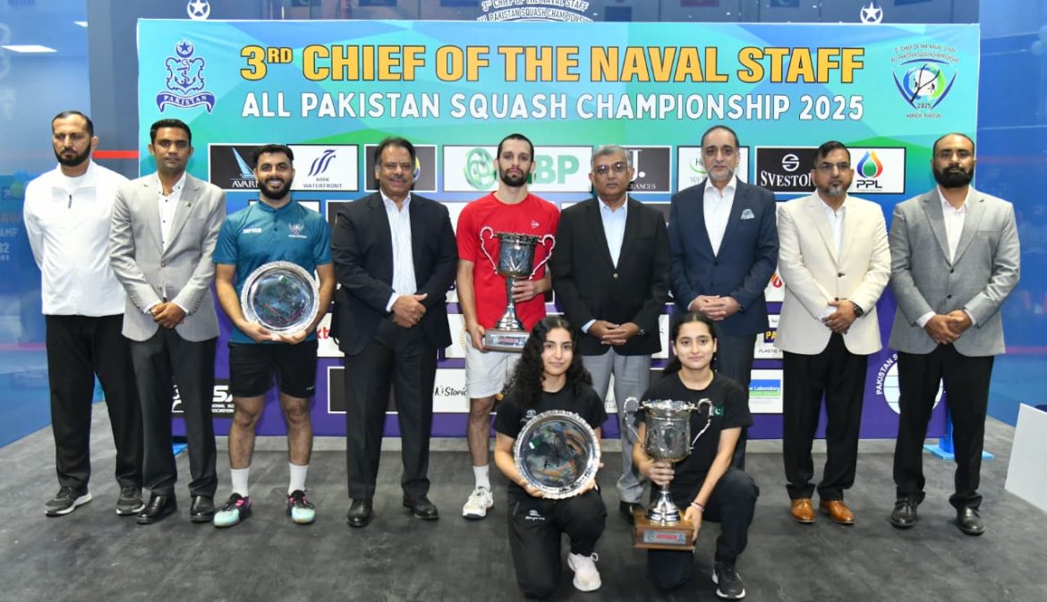 KARACHI ( WNAM REPORT ) : The final match and prize distribution ceremony of 3rd Chief of the Naval Staff All Pakistan Squash Championship 2025 was held at Pakistan Navy Roshan Khan Jahangir Khan Squash Complex, Karachi. Chief of the Naval Staff, Admiral Naveed Ashraf, graced the occasion as Chief Guest.