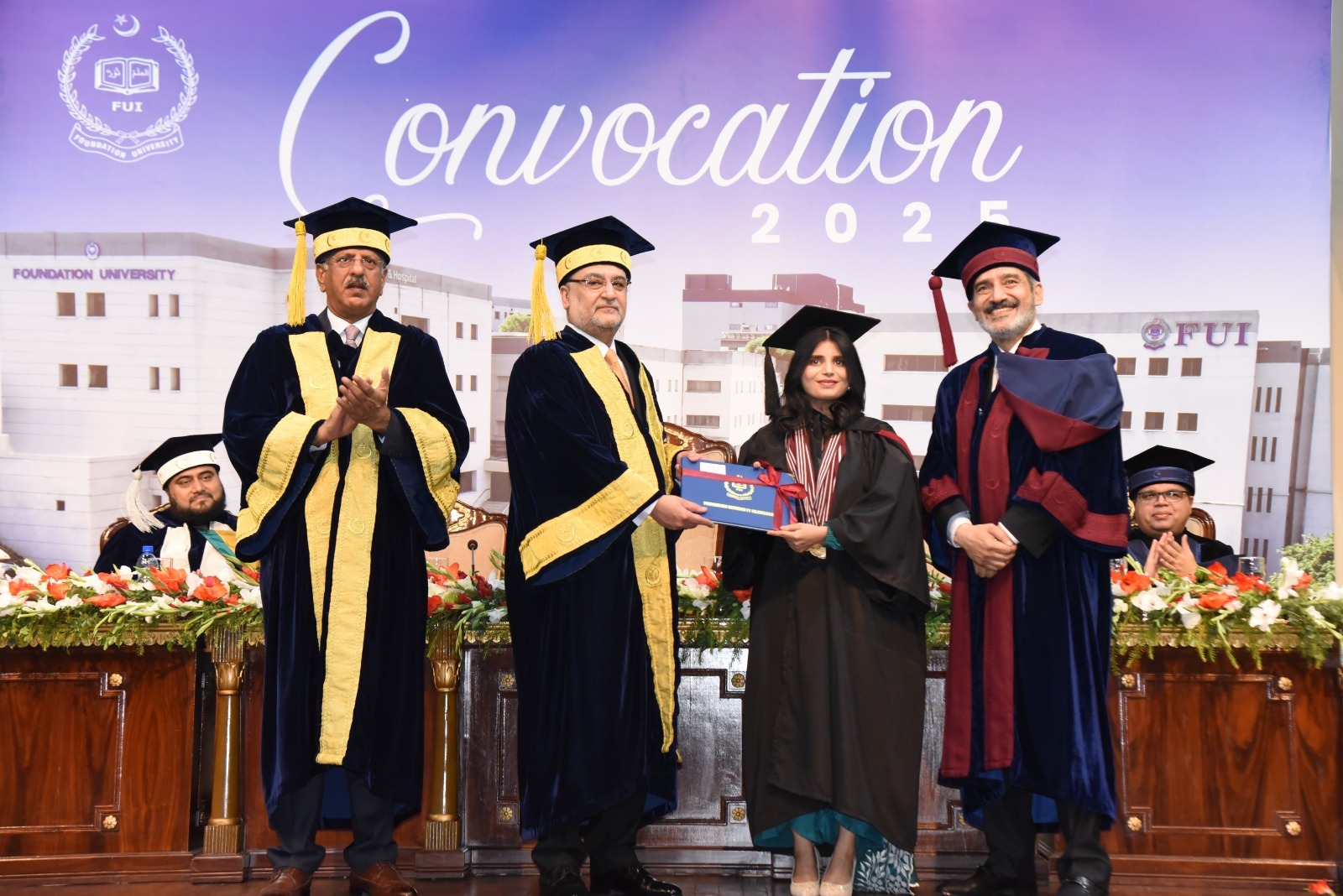 November ( WNAM REPORT ):Foundation University Islamabad held its Convocation Ceremony on November 4, 2025, at the Jinnah Auditorium, Foundation University School of Health Sciences (FUSH), to celebrate the achievements of graduates from the MBBS Session 2020–2024 and MS (CPT) Spring and Fall 2023.