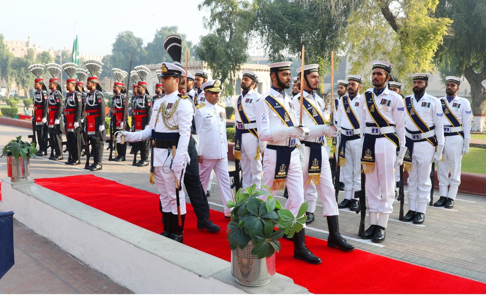 A smartly attired contingent of Pakistan Navy took over guard duties from Pakistan Rangers (Punjab). Commander Central Punjab of Pakistan Navy, Rear Admiral Sohail Ahmad Azmie graced the occasion as the Chief Guest.