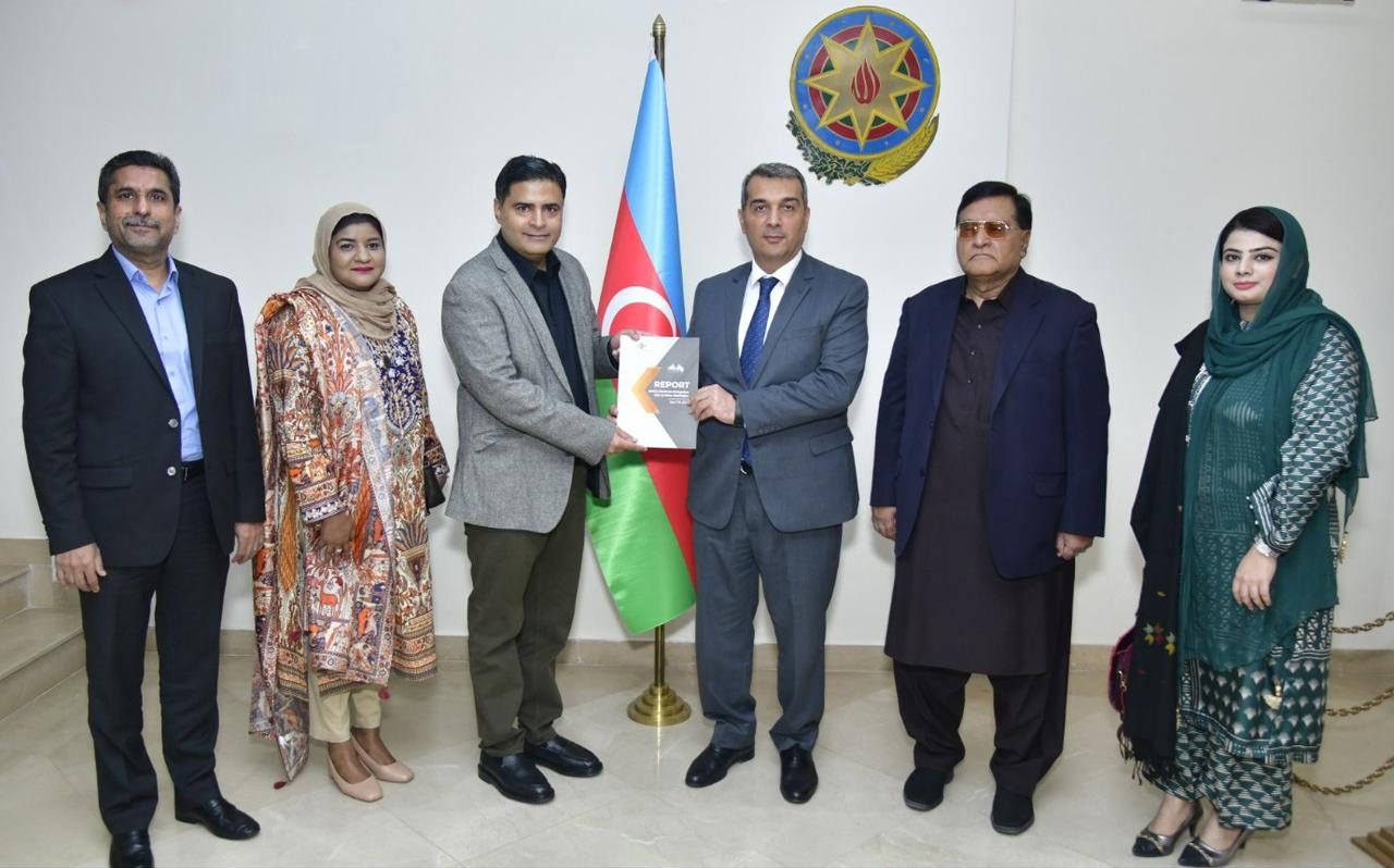 ISLAMABAD ( WNAM REPORT ): Ambassador of the Republic of Azerbaijan to Pakistan, H.E. Khazar Farhadov, has said that trade and business relations between Pakistan and Azerbaijan will continue to grow stronger with time, and that the Azerbaijan Pakistan Joint Chamber of Commerce & Industry (APJCCI) can play a vital role in this regard. He expressed these views during a meeting with a high-level APJCCI delegation led by Chairman Mr. Zafar Bakhtawari at the Azerbaijani Embassy.During the meeting, detailed discussions were held on the ongoing efforts and new initiatives aimed at strengthening economic, trade, and investment cooperation between the two brotherly nations.Ambassador Farhadov shared that during Prime Minister Shahbaz Sharif’s recent visit to Baku, the Prime Minister acknowledged and appreciated APJCCI’s efforts in promoting bilateral trade. Mr. Zafar Bakhtawari praised Ambassador Farhadov for his exceptional contributions toward enhancing bilateral ties and said that, owing to his outstanding services, he deserves nomination for Pakistan’s highest civil award.APJCCI Patron-in-Chief Mr. Ahsan Zafar Bakhtawari presented the report of the Chamber’s recent delegation visit to Baku, held in September. He said the delegation’s meetings with government institutions, business organizations, and private companies proved highly productive, opening new avenues of cooperation. He also announced the launch of APJCCI’s official website . Mr. Ahsan Zafar Bakhtawari further informed that APJCCI, in collaboration with the Islamabad Women Chamber of Commerce & Industry (IWCCI), will organize the 7th Islamabad Expo 2025 on December 6–7 at the Pak-China Friendship Centre, Islamabad, and extended an invitation to the Ambassador to attend as Chief Guest. He added that around ten Azerbaijani companies are expected to participate in this mega event.He also announced that APJCCI plans to hold the Azerbaijan–Pakistan Business Forum next year , Former IWCCI President Ms. Naima Ansari also invited the Ambassador to attend the Expo as Chief Guest, a request he graciously accepted.