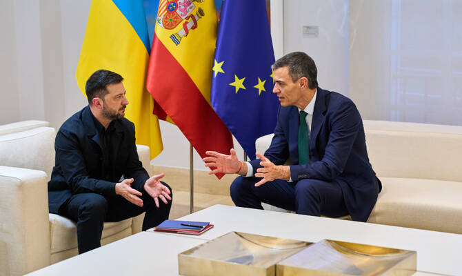 Speaking at a Madrid press conference alongside visiting Ukrainian President Volodymyr Zelensky, Sanchez said around 300 million euros will go toward “new defense equipment.”
