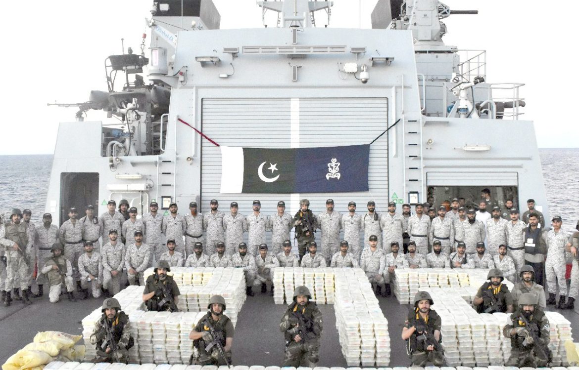 ISLAMABAD ( WNAM REPORT ): Pakistan Navy Ship TABUK, while operating on Regional Maritime Security Patrol (RMSP) and in support of Saudi-led CTF-150 under HQ Combined Maritime Forces (CMF), intercepted a suspicious dhow operating in the Arabian Sea. Subsequently, the ship successfully conducted a major counter-narcotics operation onboard stateless dhow resulting in the seizure of over 2000 Kg of methamphetamine (ICE). The estimated regional wholesale value of apprehend narcotics is 130 million US dollars.