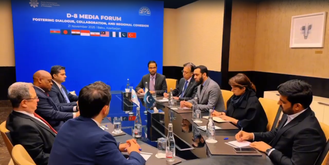 BAKU ( WNAM REPORT): Federal Minister for Information and Broadcasting Attaullah Tarar, in a meeting with D-8 Secretary General Ambassador Isiaka Abdulqadir Imam, discussed enhancing collaboration in the media sector, countering fake news, and addressing key global issues among D-8 countries. Speaking on the occasion, the minister described fake news as one of the biggest global challenges. He stressed the need for an effective strategy on social media platforms and underscored that a robust fact-checking system is essential to counter misinformation. The strength of the collective narrative of D-8 nations hinges on curbing the spread of fake news. The minister stressed that member states must adopt a unified media strategy to effectively counter misinformation and safeguard regional discourse.