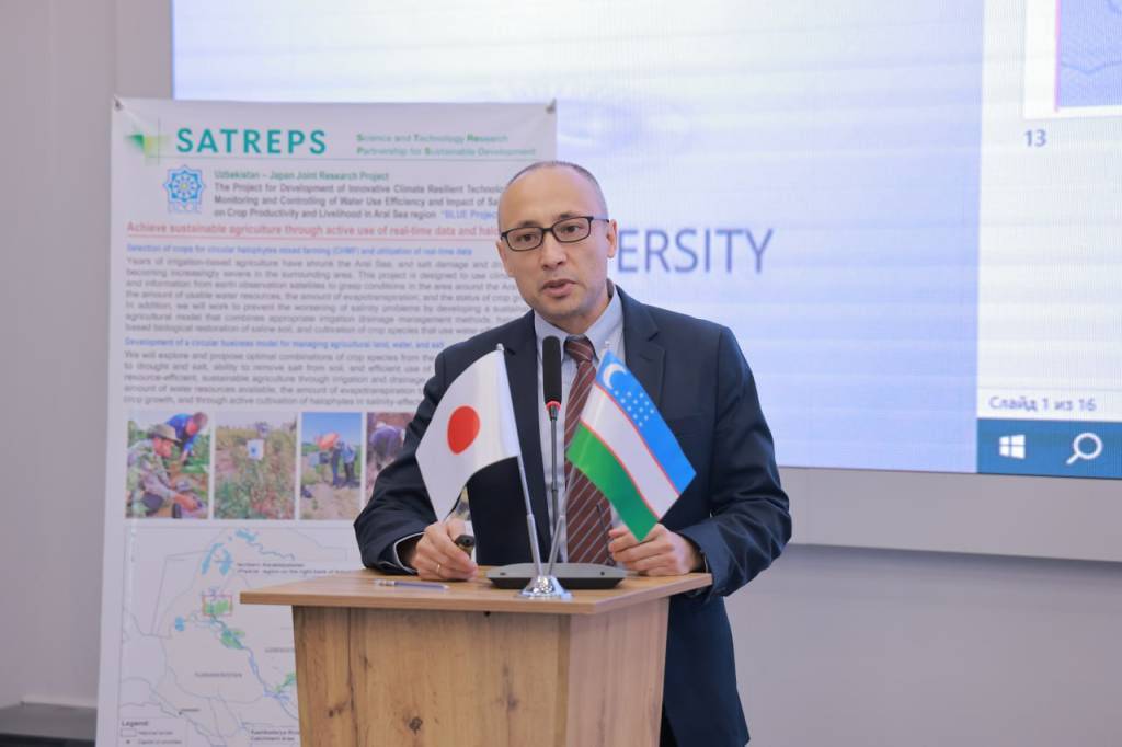 In his speech, the Rector of Green University, Professor Bakhtiyor Pulatov, stressed the importance of scientifically grounded, climate-adapted approaches to addressing water scarcity, land degradation, and soil salinization. He also noted that international cooperation within the SATREPS and BLUE programs plays a significant role in the practical application of scientific developments.
