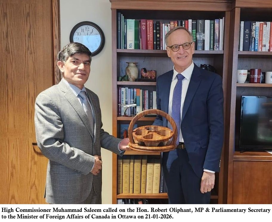 WNAM REPORT: High Commissioner of Pakistan to Canada Muhammad Saleem on Friday called on the Robert Oliphant, MP and Parliamentary Secretary to the Minister of Foreign Affairs here.