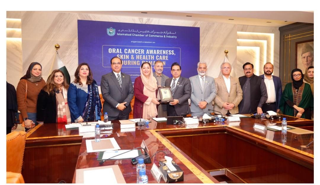 Islamabad ( WNAM REPORT ): The Islamabad Chamber of Commerce and Industry (ICCI) organized an impactful awareness session titled “Oral Cancer Awareness, Skin and Health Care during Ramadan” at the Chamber House. The event was graced by State Minister for Federal Education and Professional Training, Ms. Wajiha Qamar, as the Chief Guest. Former Presidents, executive committee members, distinguished medical experts, and members of the business community attended the session in large number.