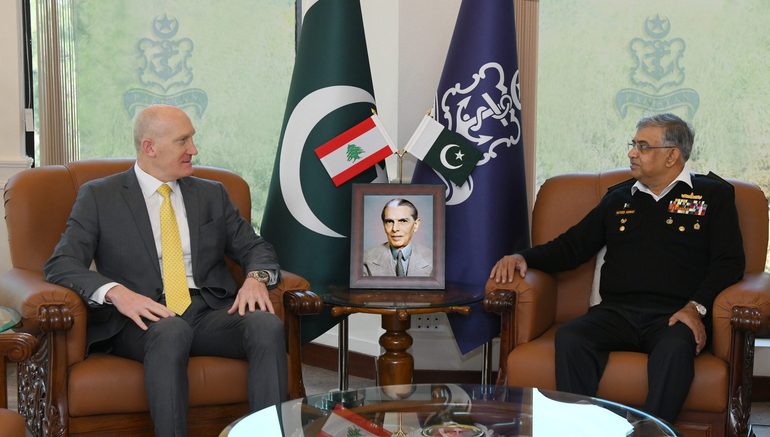ISLAMABAD ( WNAM REPORT ): Ambassador of Lebanon to Pakistan, H.E Mr. Abdulaziz Issa called on Chief of the Naval Staff, Admiral Naveed Ashraf at Naval Headquarters Islamabad on Monday.