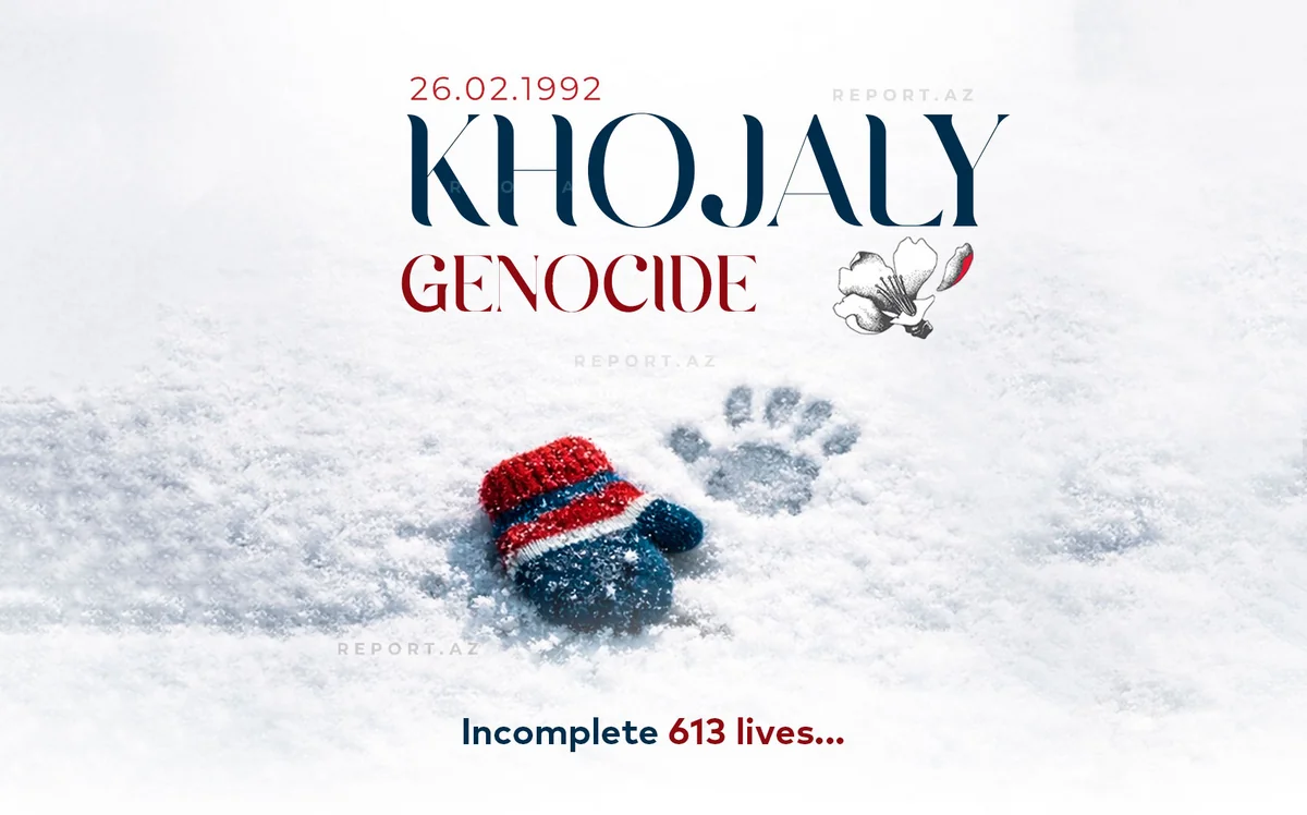 The massacre committed by Armenian aggressors against the Azerbaijani people claimed the lives of 613 people, including 106 women, 63 children, and 70 elderly persons. A total of 1,275 civilians were taken hostage, and the fate of 150 of them remains unknown. Another 475 people were injured and left disabled. Eight families were completely annihilated. Twenty-five children lost both parents, while 130 children lost one parent.